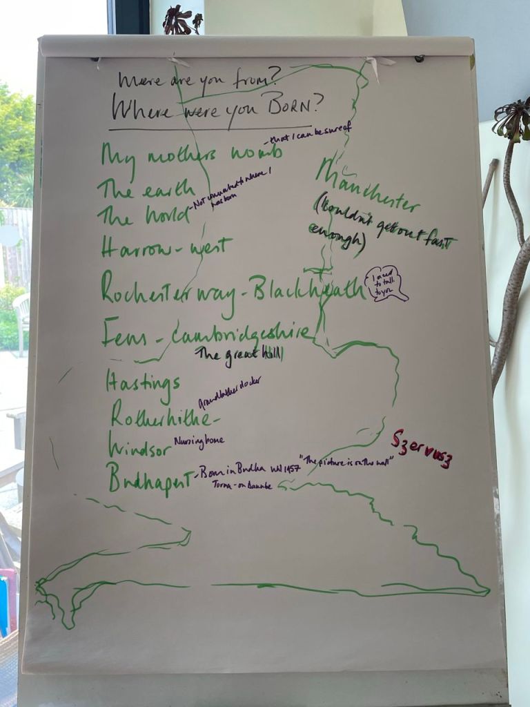 After delicious coffee and cake that are renown at the Pear Tree, we settled in our groups and began our exploring of our origins and pasts. Parents, grandparents, place, brothers, sisters…