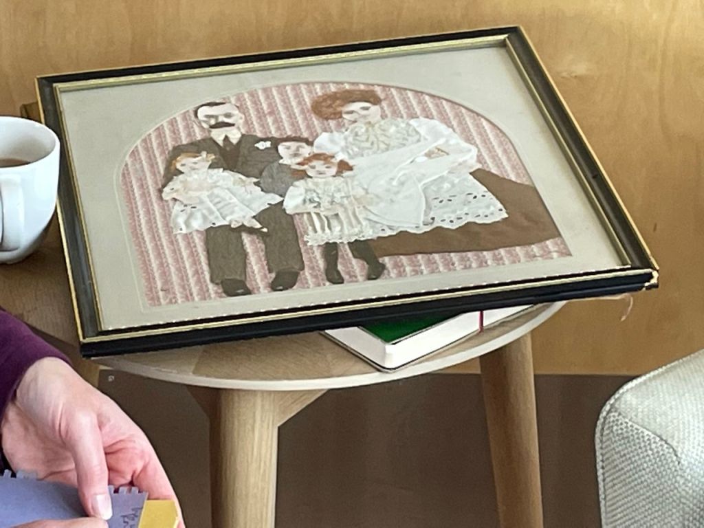 One of us bought with them a stunning material collage she made of her family portrait, her grandparents with 3 of their many more children.