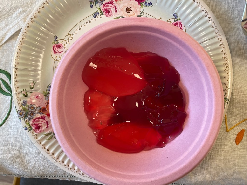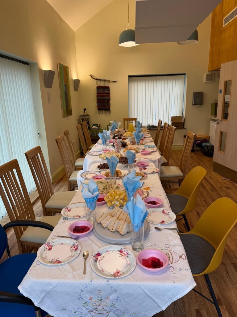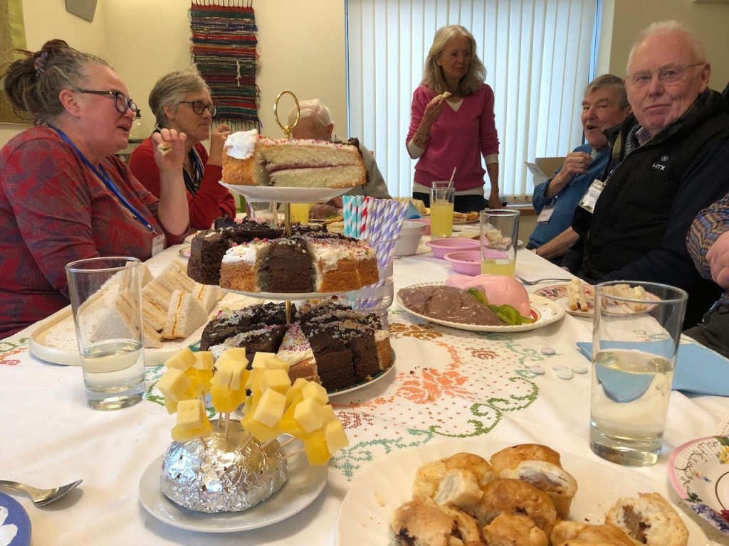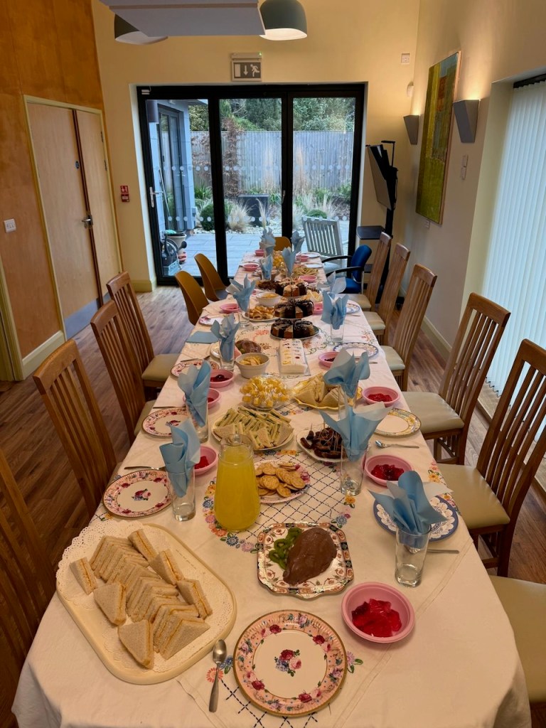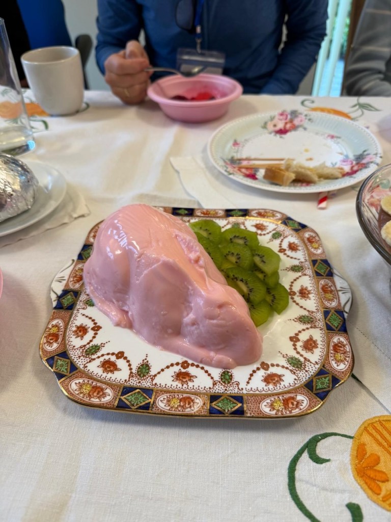 We were rewarded with the most stimulating imaginative tea party: pink rabbit blancmange, jelly, fish paste sandwiches, hedgehogs of pineapple and cheese, chipolatas and cake of course.