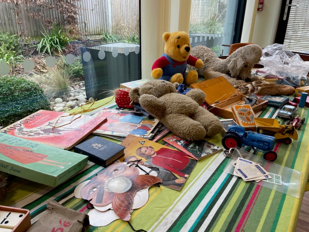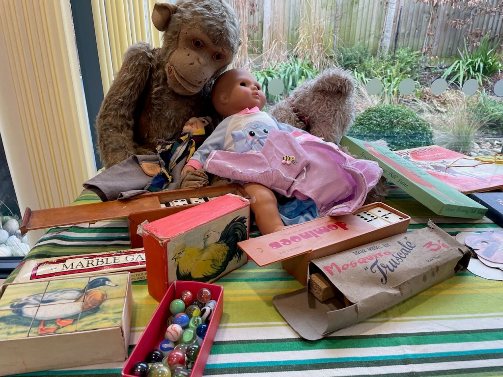 Dinky toys, cuddly bears, skipping ropes, marbles, cigarette cards, hand puppets, illustrated books, they came out of the woodwork, along with our photographs. All to jog our memories of our childhood.